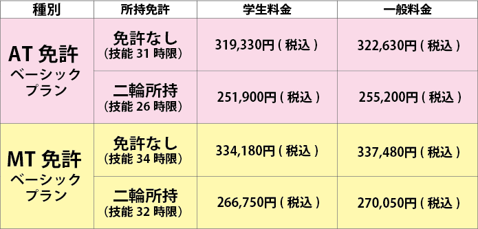 取り扱いプラン(教習所でのお申込み)