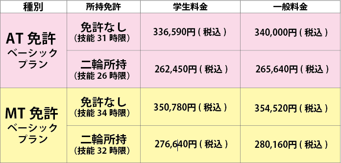 (検定不合格時の補習及び再検定料含む|自由教習は別)
